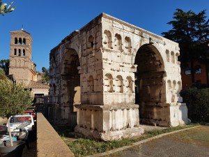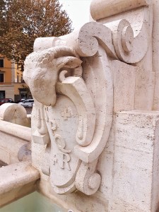 På buen over fontenen ser vi bokstavene SPQR. Dette akronymet er hentet fra det antikke Roma. Bokstavene står for Senatus populusque romanus («det romerske senat og folk»). Det var først en benevnelse på den romerske republikken, men ble senere også brukt av keiserne for å markere statlig eierskap. I det moderne Roma brukes SPQR fortsatt til å markere kommunal eiendom; feks på kumlokk.